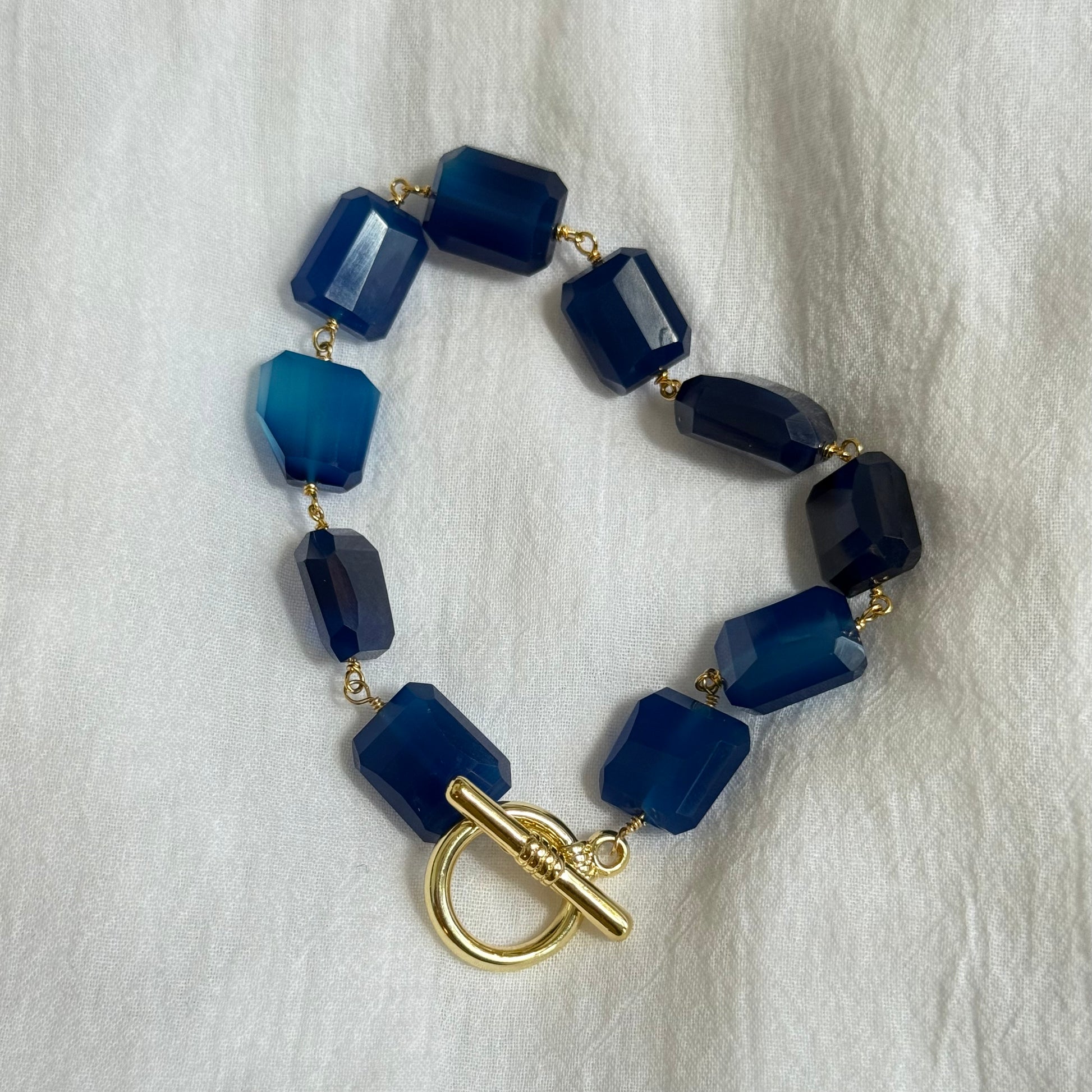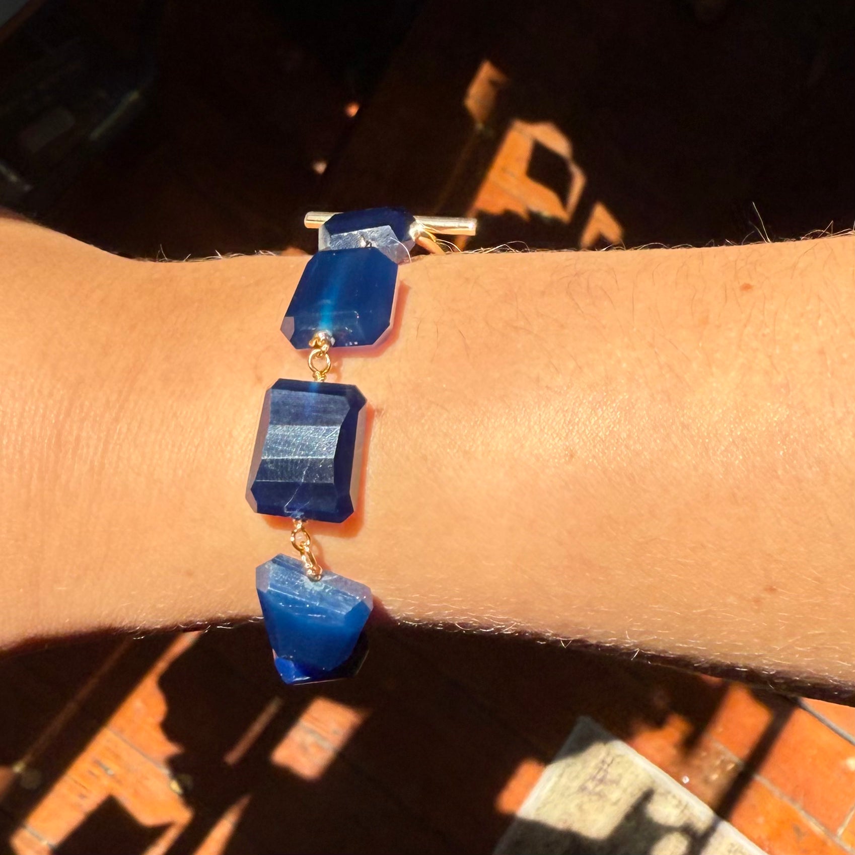 Like crisp air and clear skies, the Blue Harvest Bracelet evokes the quiet brilliance of early autumn—bold, grounded, and bathed in golden light.