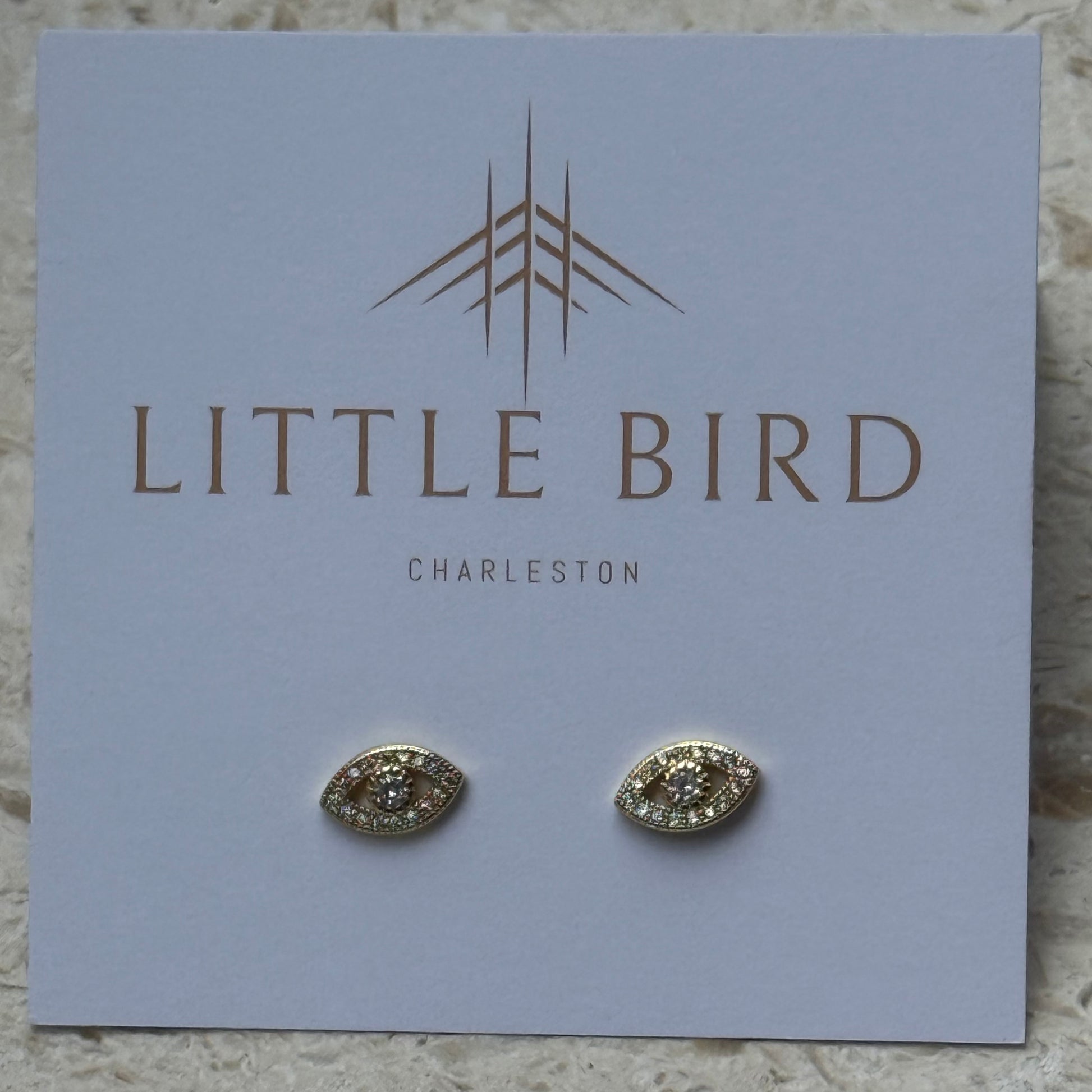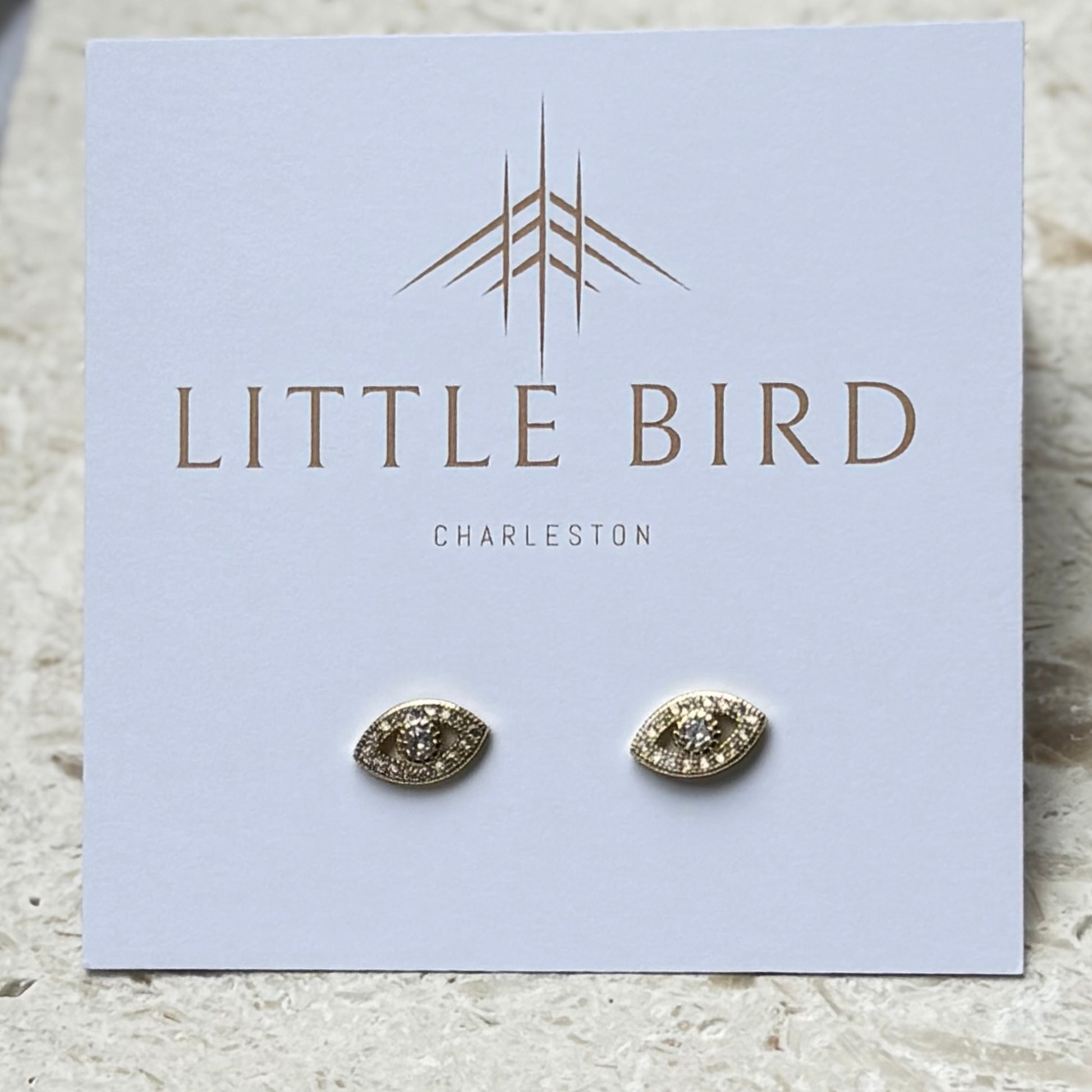 Each pair is sculpted in warm 18k gold fill and adorned with a delicate evil eye charm—an ancient symbol of clarity and protection, passed through generations and across cultures. The soft shine evokes winter skies and calm waters, offering a subtle talisman to guide you through the season.