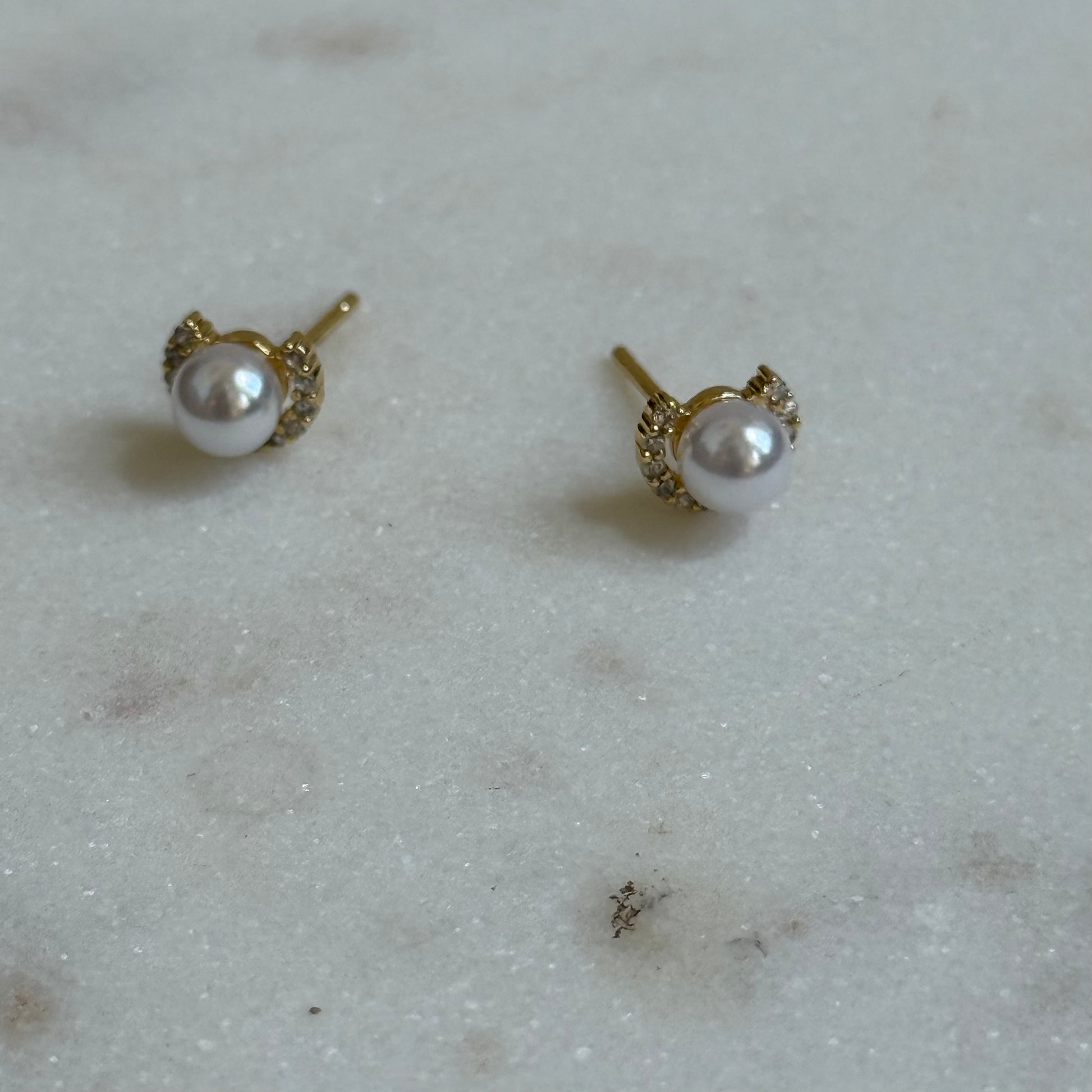 Harvest Halo Studs – Pearl & Pavé with Sterling Posts