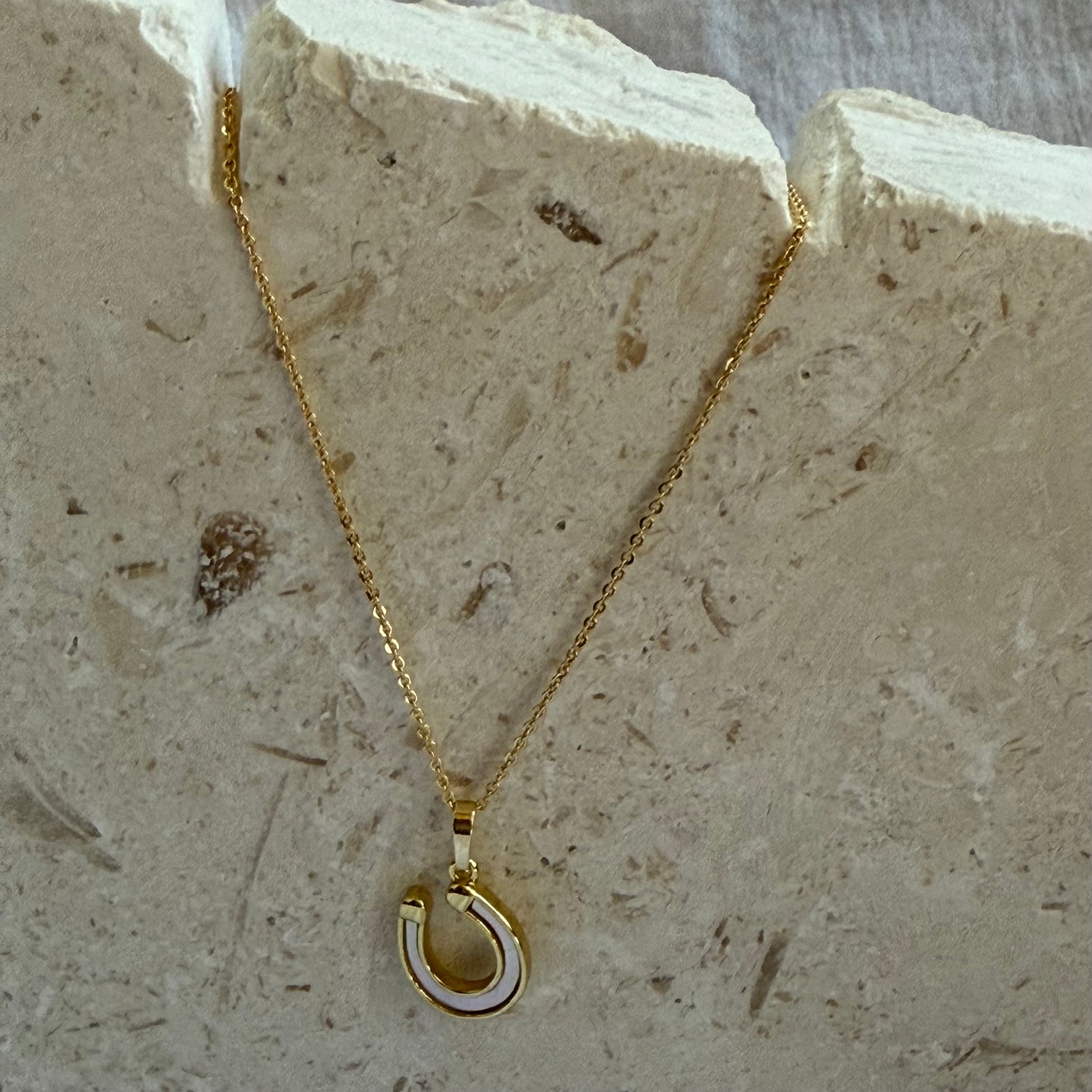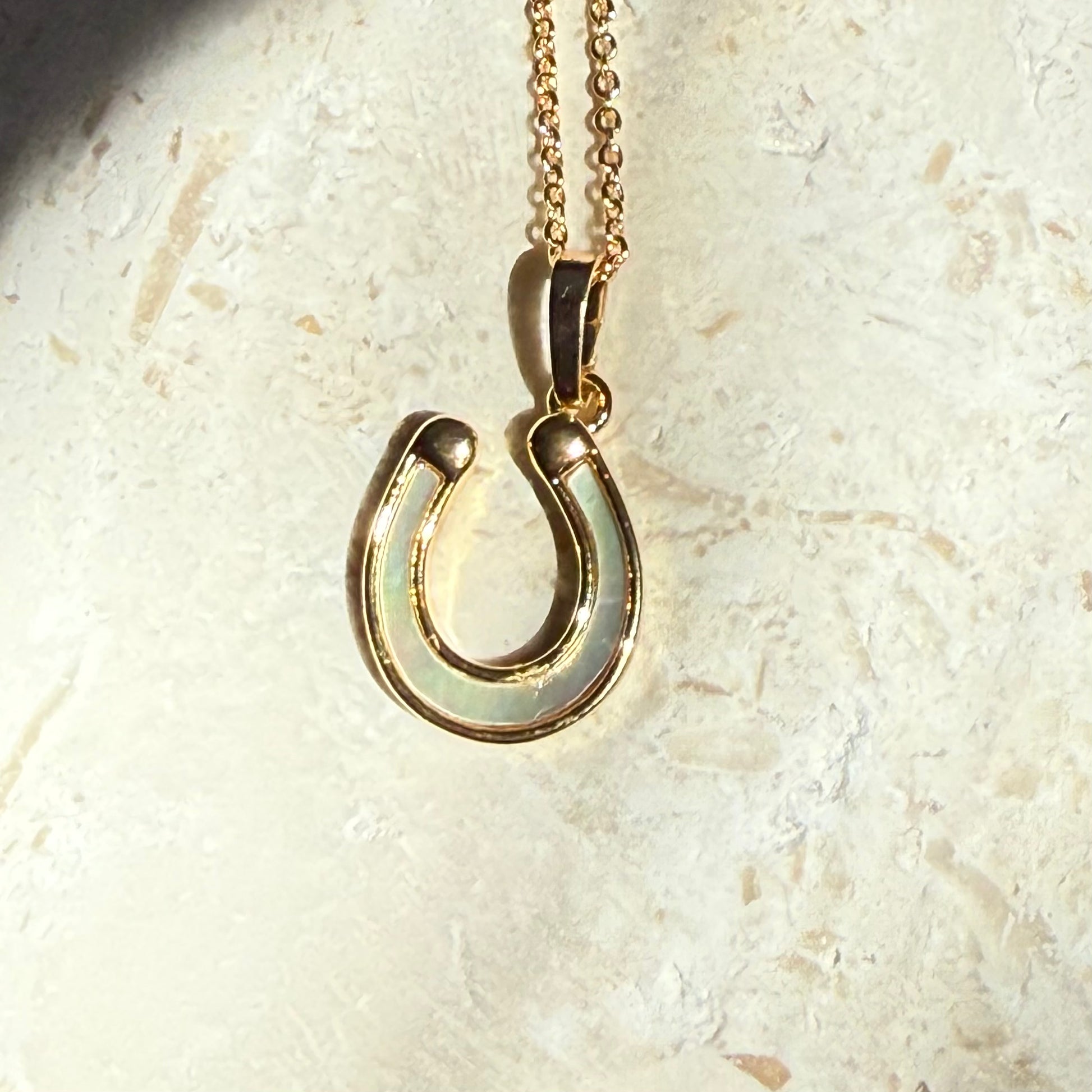 Harvest Luck Necklace – Mother of Pearl Horseshoe on 14K Gold Fill