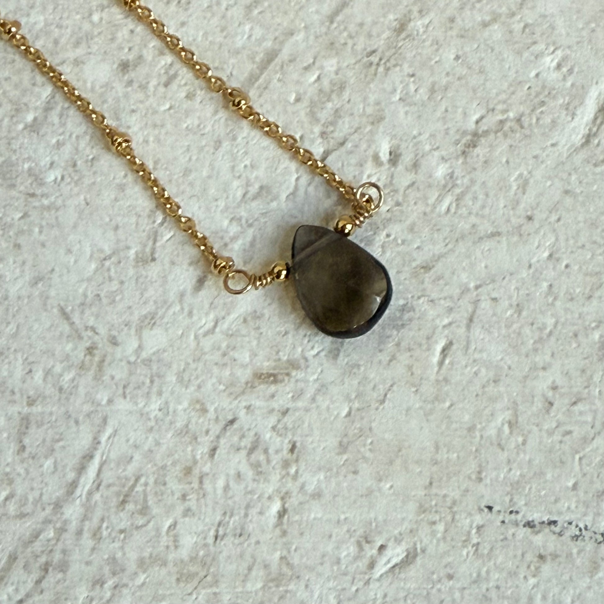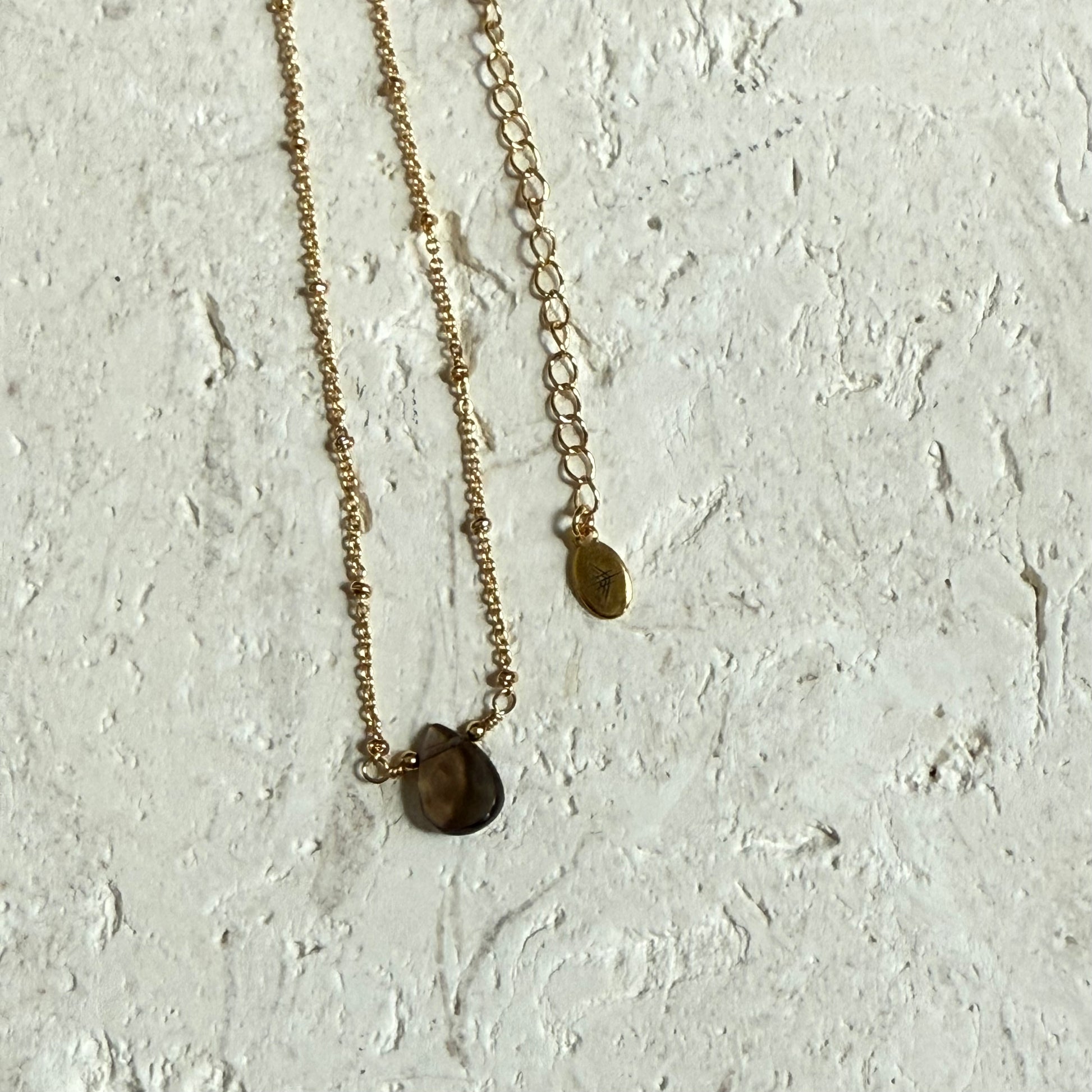 At 16 inches with a 2-inch extender, it nestles gracefully at the collarbone, adjustable for your favorite neckline or stacked look. Each smoky quartz is hand-selected for its translucent depth and earthy tone—a soft reminder of strength and stillness.