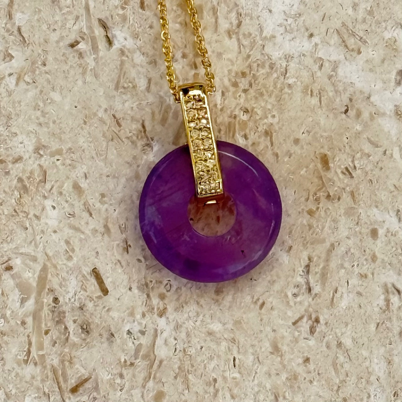 Amethyst is known as the stone of serenity and spiritual connection. Long believed to offer clarity and peace, it’s the perfect gem for expressing deep affection—with yourself or with someone beloved. The circular shape speaks to unity, continuity, and the comfort of love that doesn’t unravel.