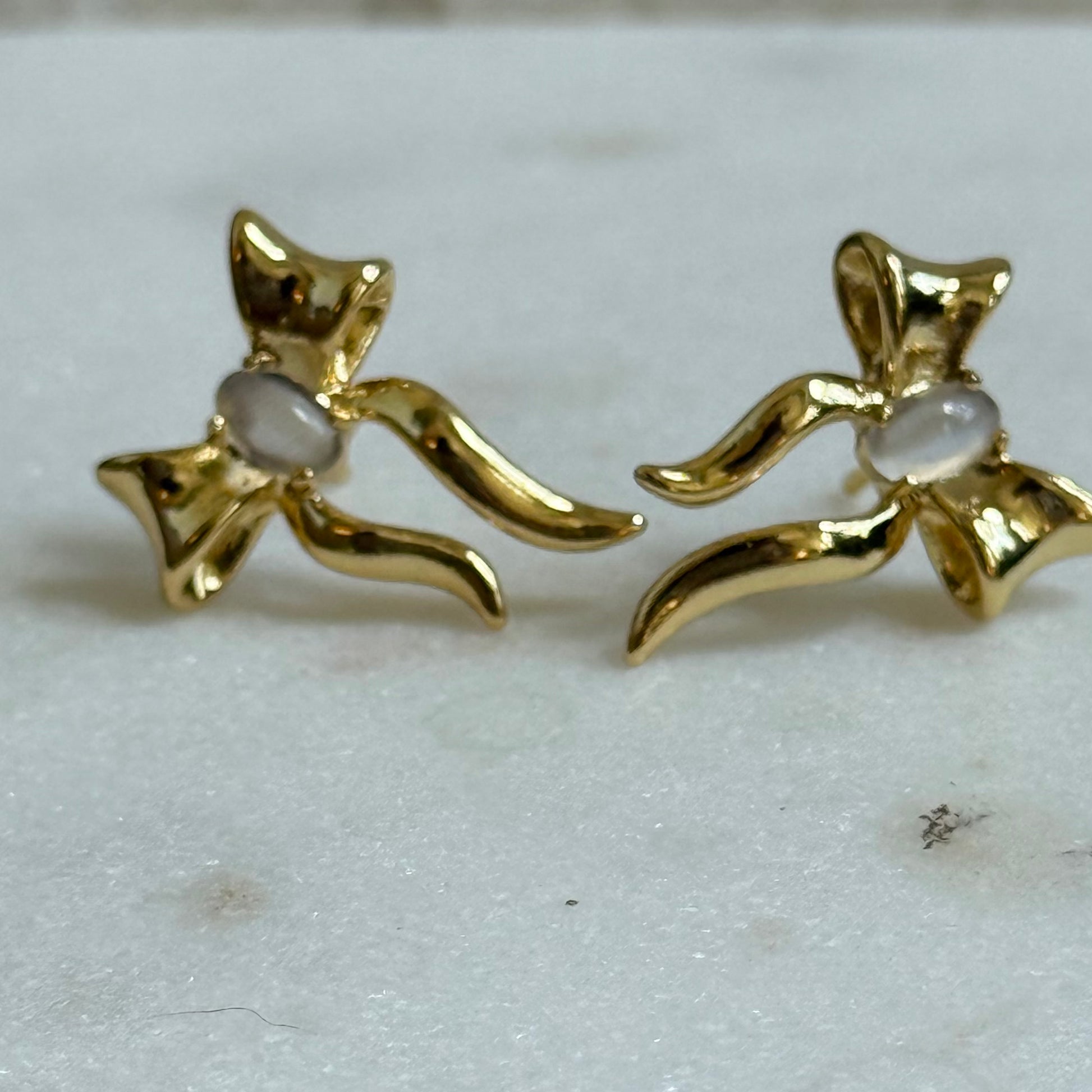 Moonlit Bow Studs – Cat’s Eye Center with Sterling Posts