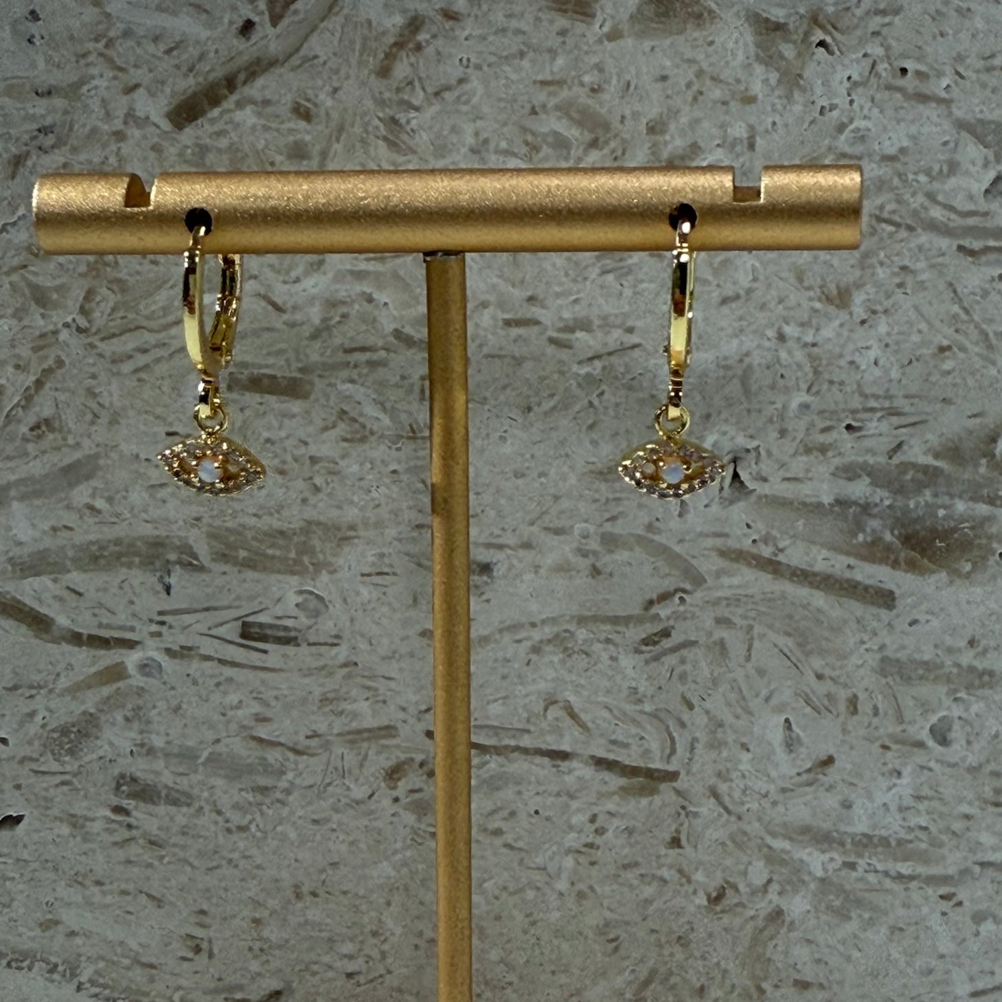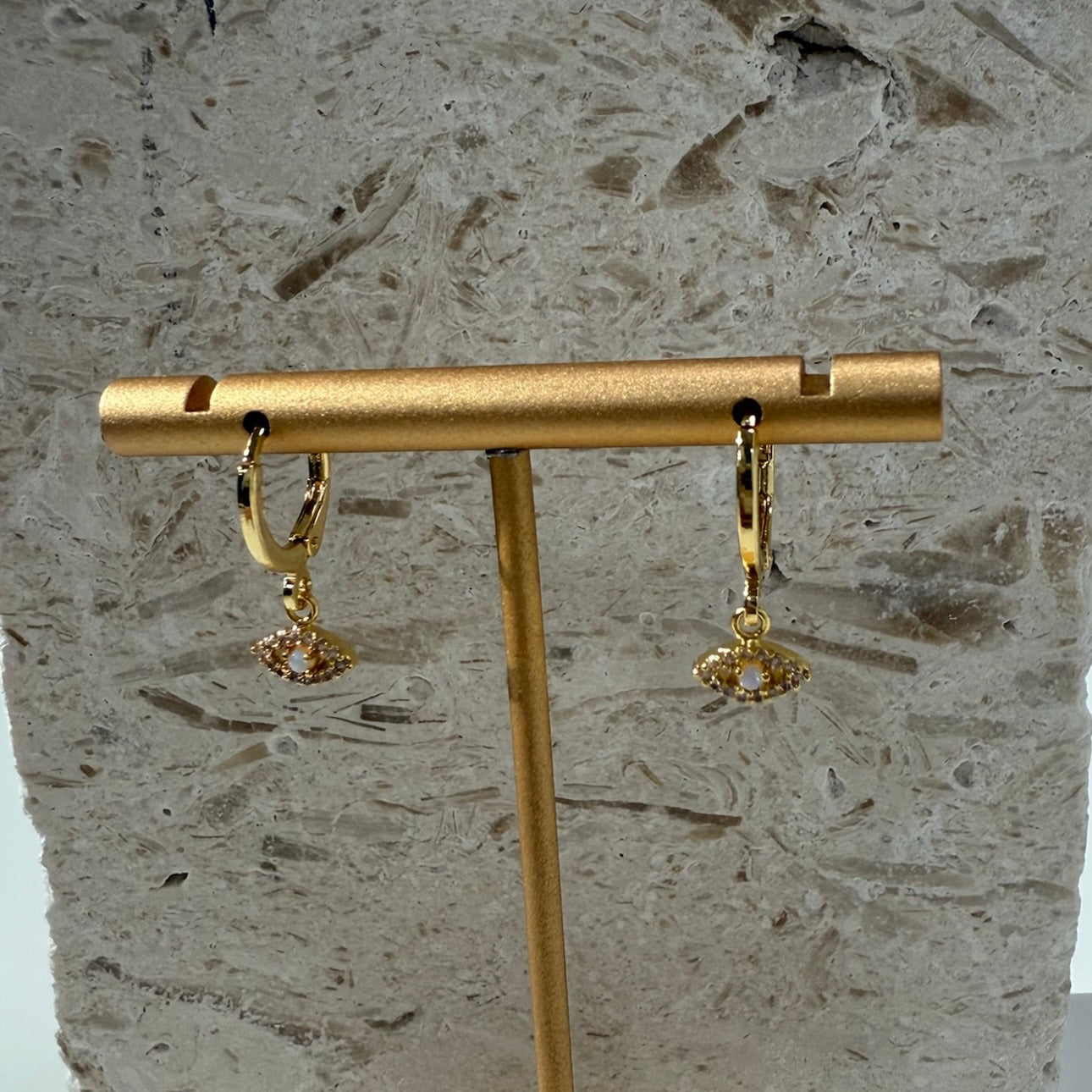 Delicate and quietly protective, the Northwatch Huggies carry a whisper of winter magic. Each gold-filled hoop holds a tiny evil eye charm and a glint of opal—like lanterns flickering against the stillness of a cold night. Together, they offer shimmer, grounding, and a sense of gentle watchfulness.