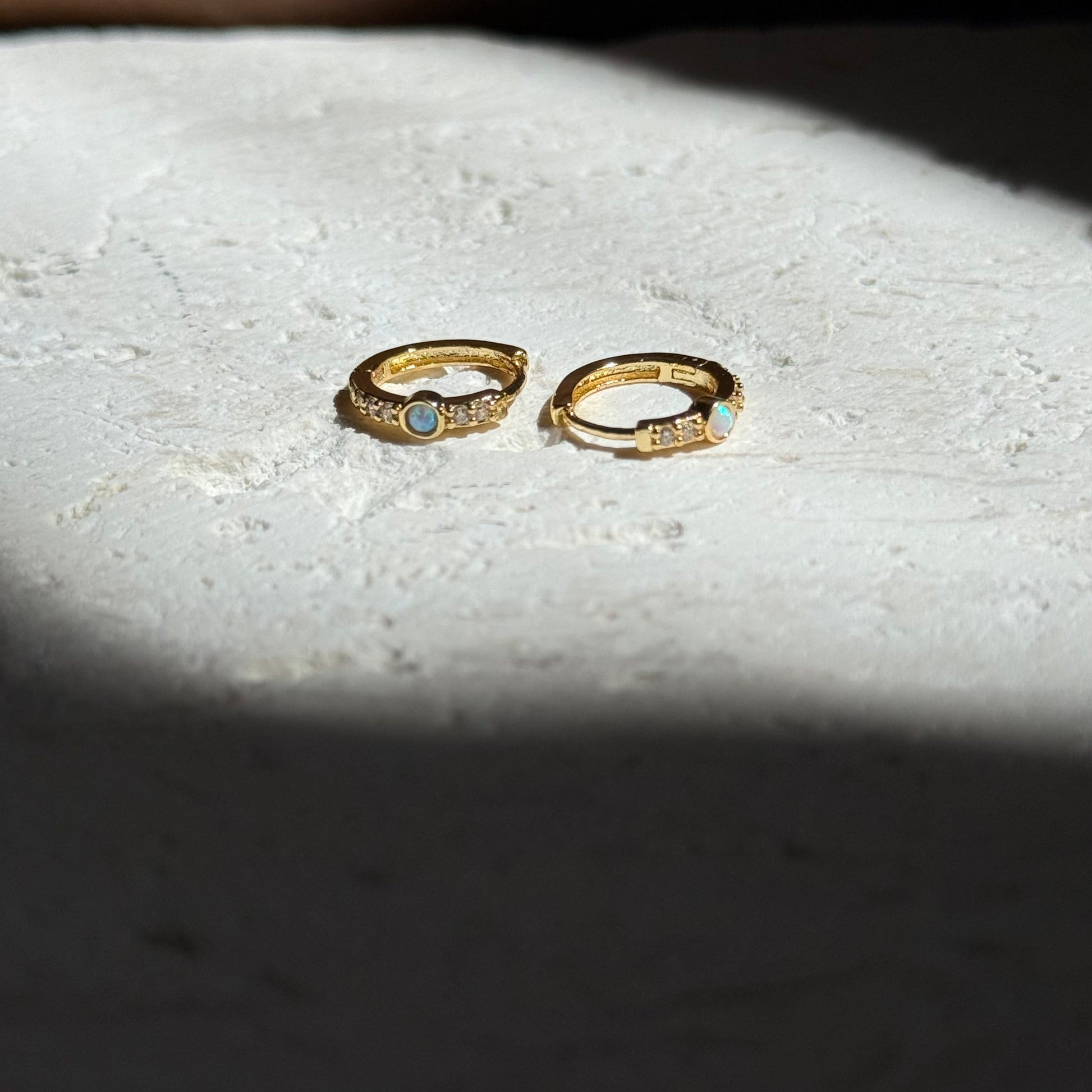 Opaline Huggy Hoops – CZ Channel with Center Opal