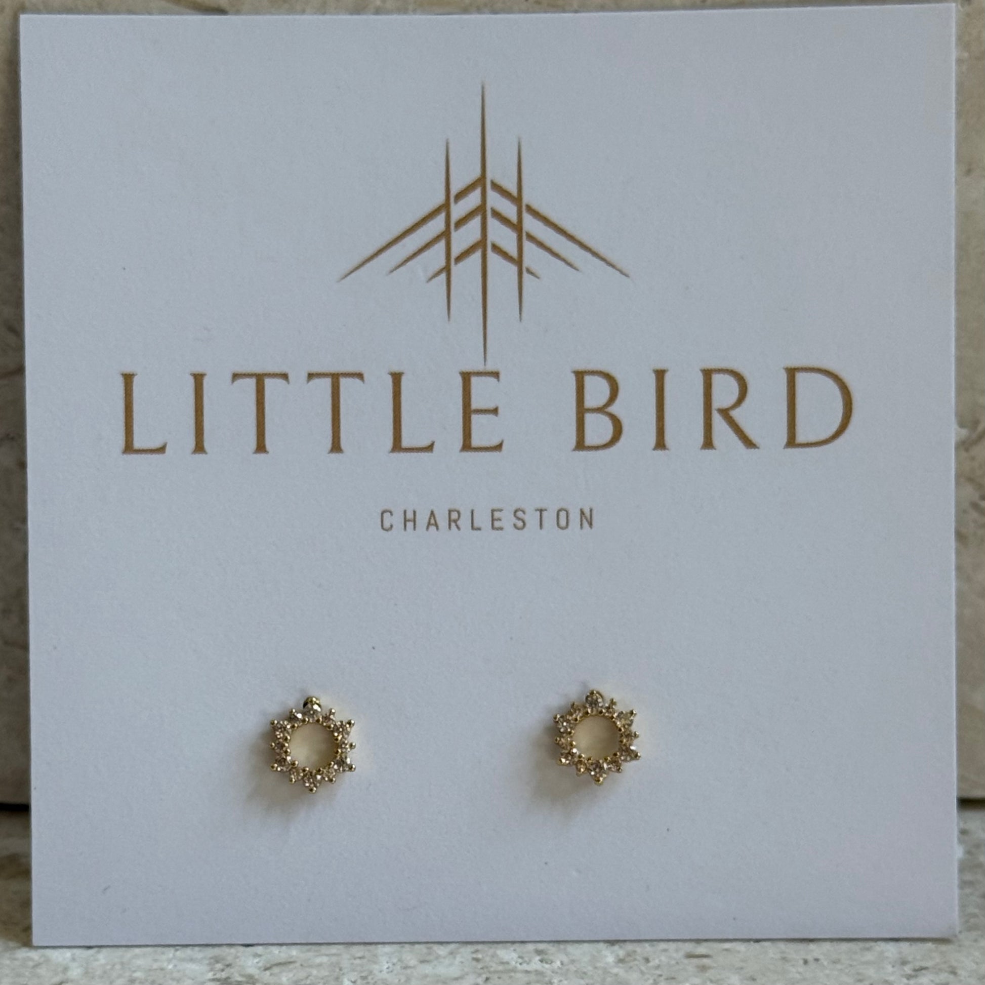 A circle of light, soft as a breath. The Bloomlight Studs are a delicate halo of crystal CZs, shaped like tiny flower petals in bloom—radiant and quietly romantic.