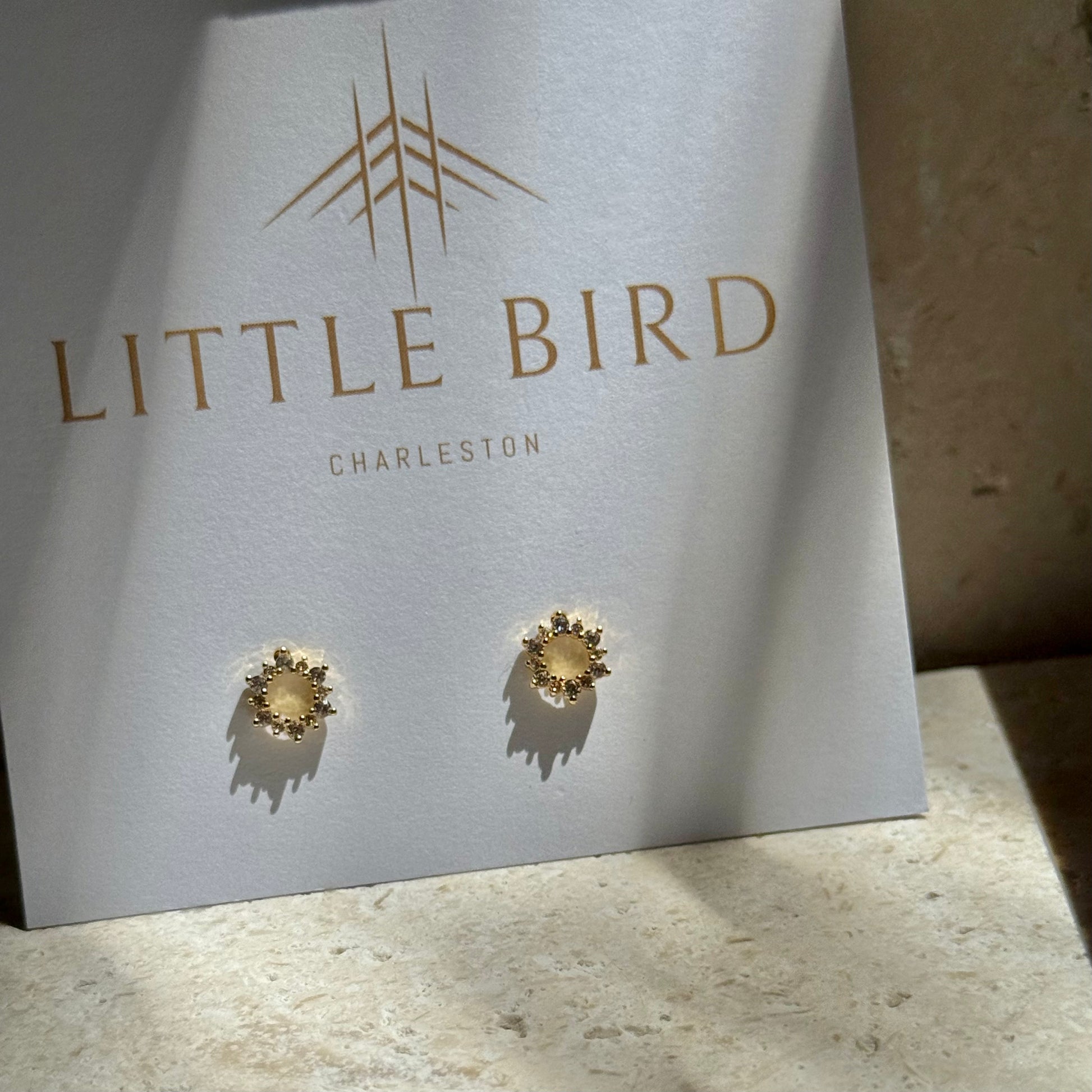 Set with sterling silver posts and hand-finished in small batches, each pair is a little celebration of brightness—petal by petal, sparkle by sparkle.