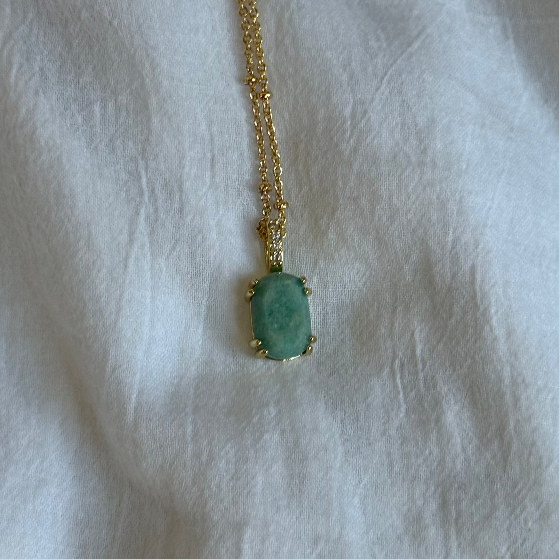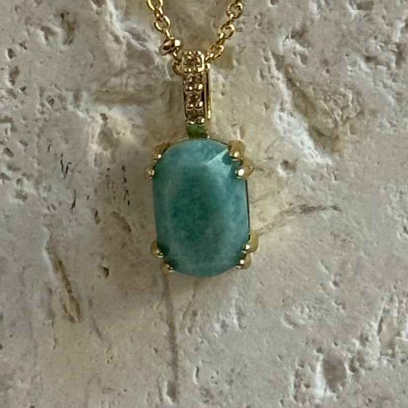 Suspended from a 14k gold fill chain (16 inches with a 2-inch extender), this piece lays just at the collarbone—a gentle touch of color and quiet luxury. The aquamarine’s watery hue evokes clarity and calm, offering a subtle moment of pause in your day.