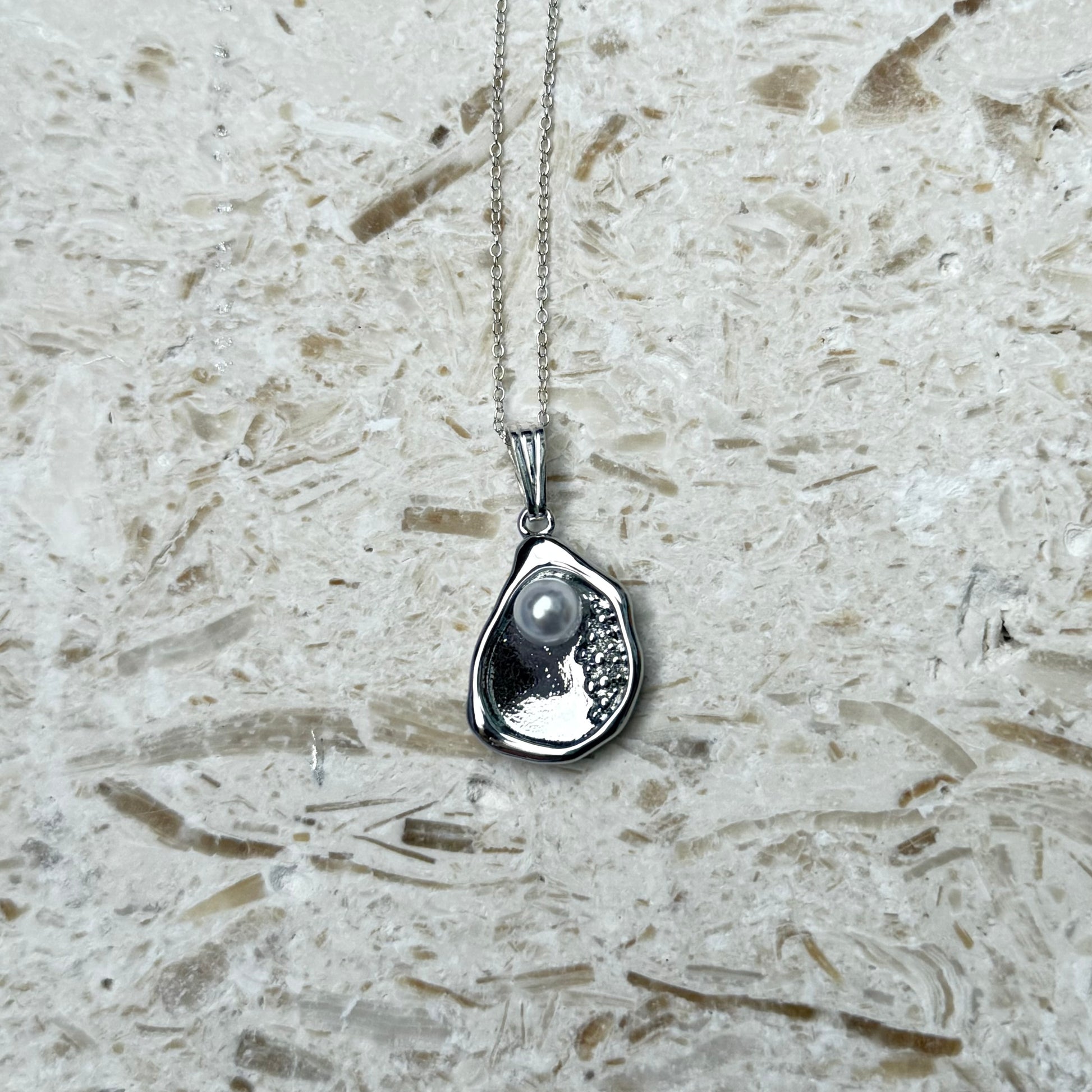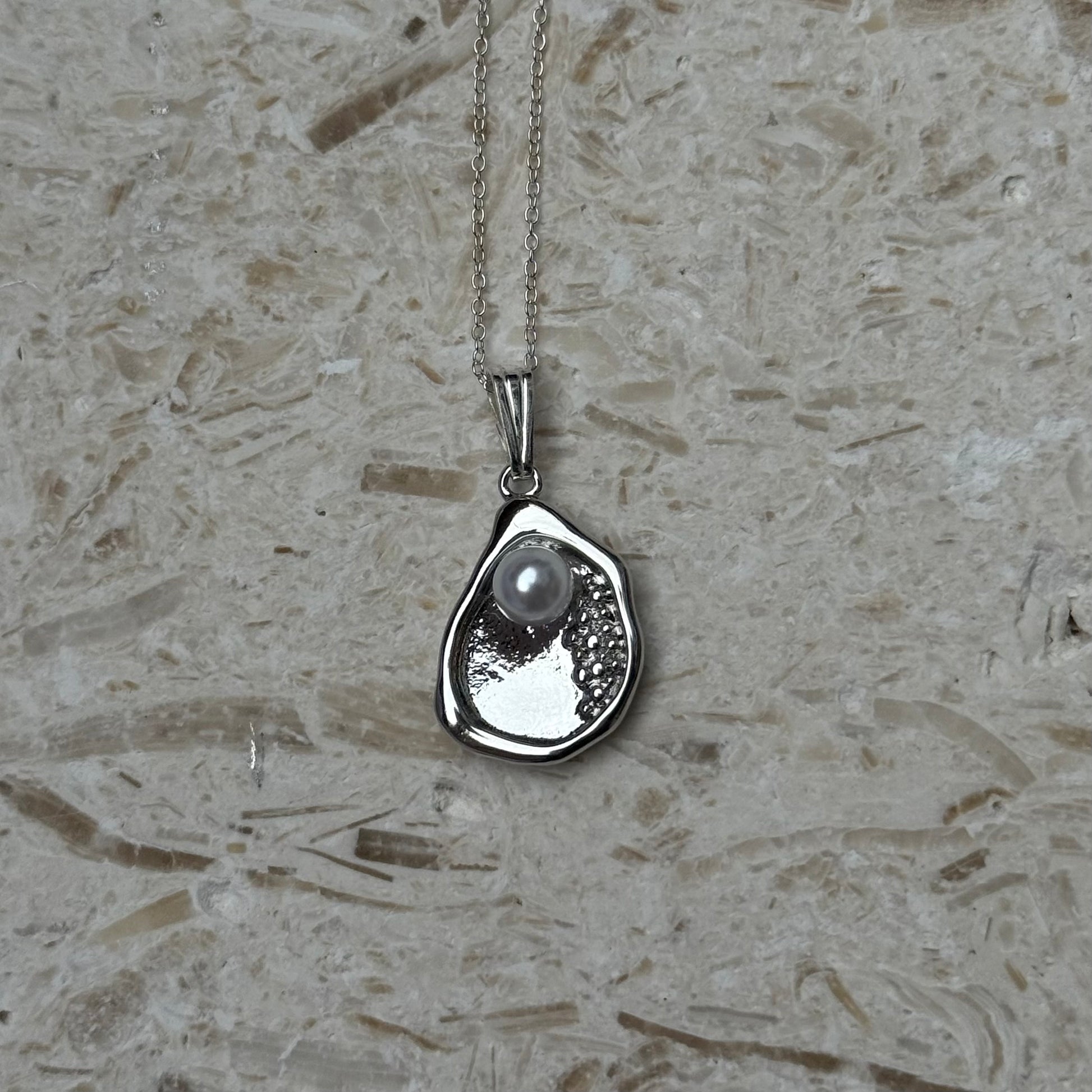 Winter Tide Necklace – Oyster & Pearl Charm on Sterling Silver Chain
