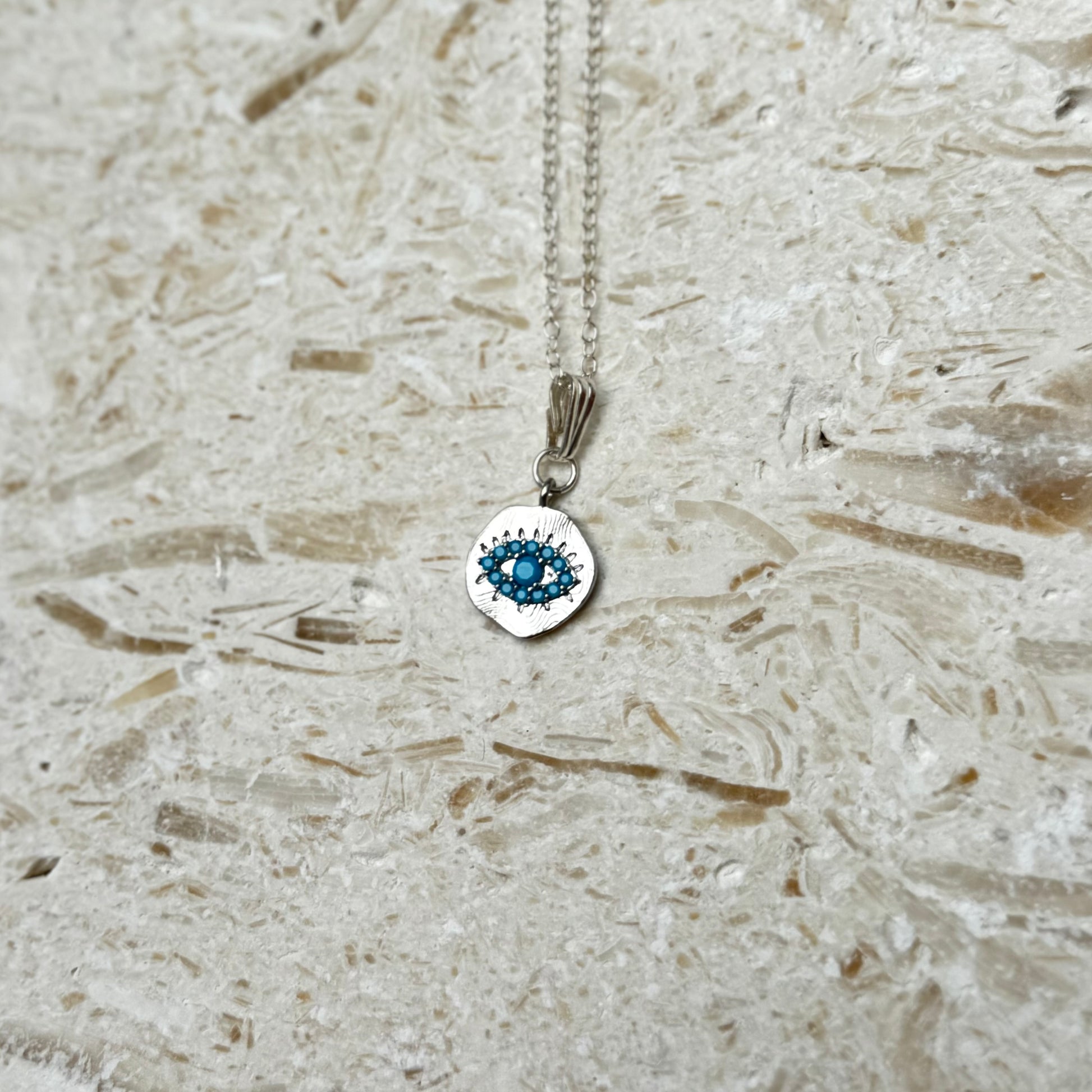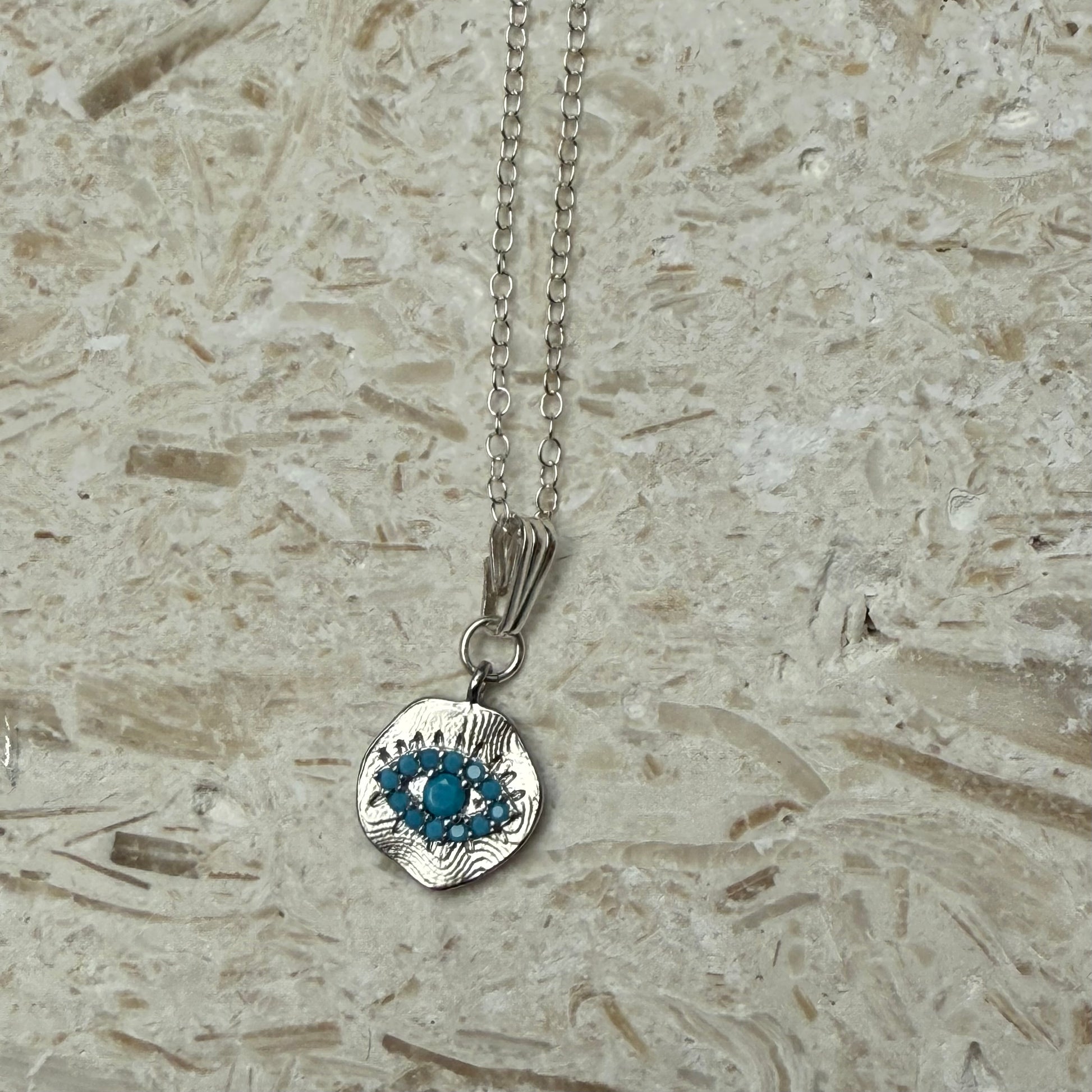 Winter Watch Necklace – Turquoise Evil Eye on Sterling Silver
