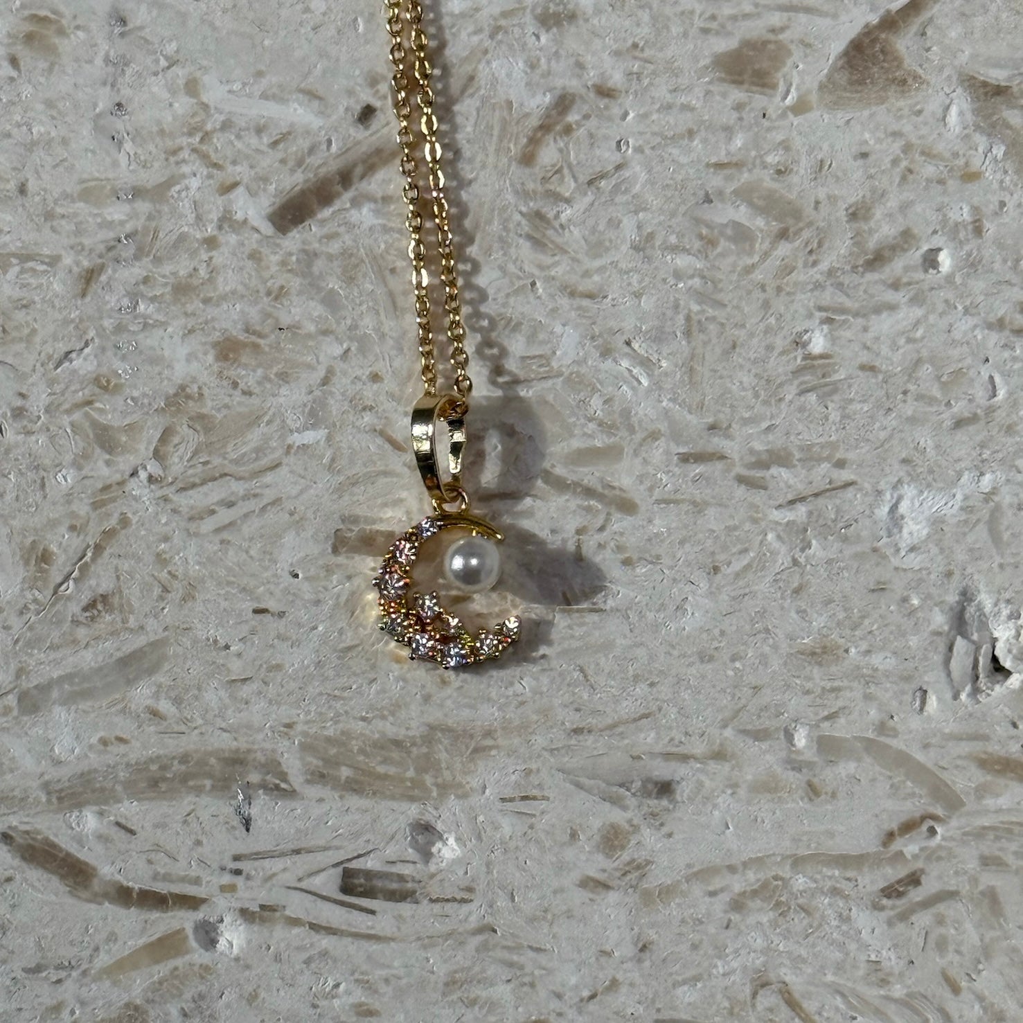 Soft as first snow and quietly luminous, the Wintersong Necklace brings together a single freshwater pearl and a golden crescent moon—gently dusted with sparkling zircon like stars in a hushed sky. It’s a piece that holds stillness, wonder, and the quiet magic of winter’s in-between moments.